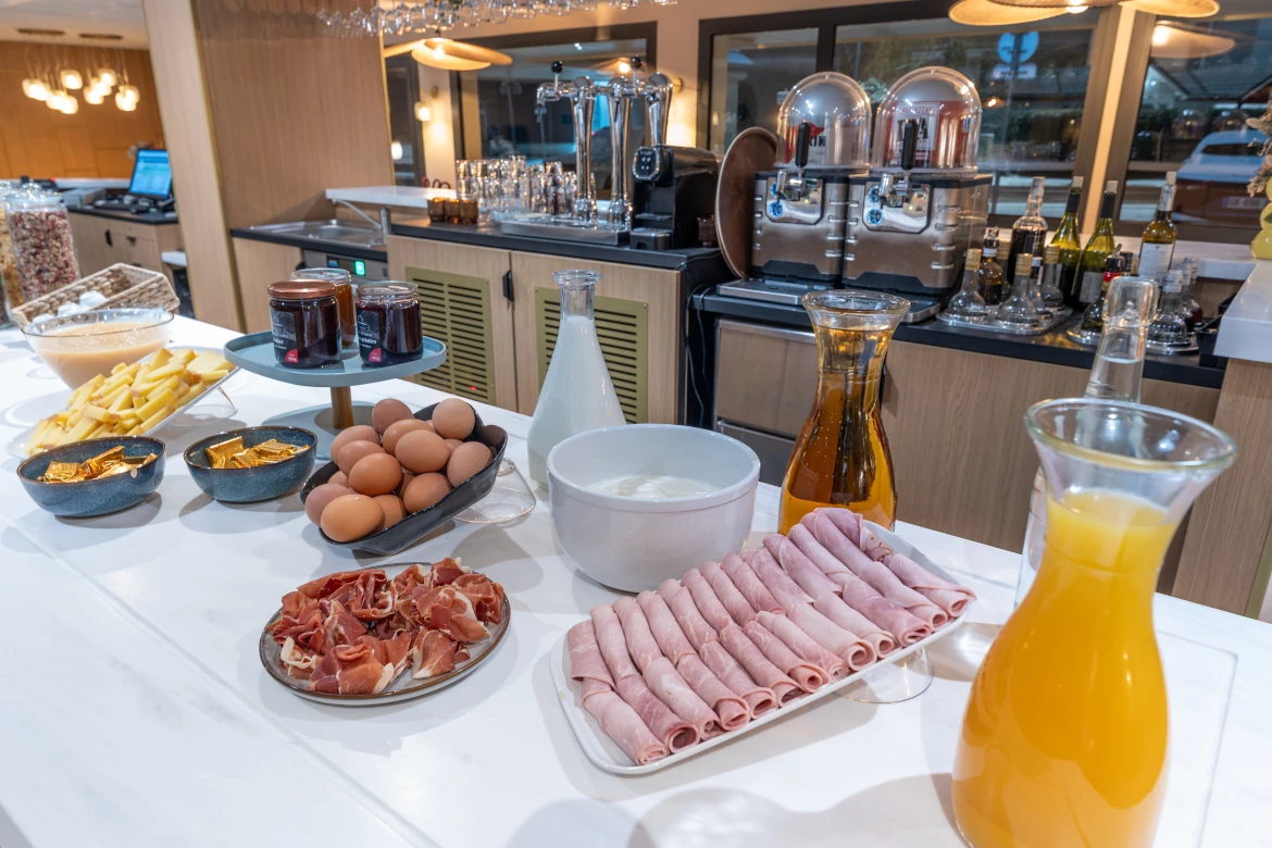 Découvrez un petit déjeuner en buffet continental à volonté servi à l’hôtel Bhoma situé en face de notre établissement.